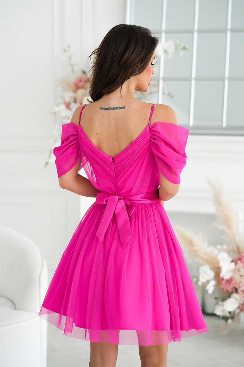 See kaunis tüllkleit ühendab endas naiselikkuse, elegantsi ja piduliku kerguse. Õrnalt langev tüllseelik annab kleidile õhulise ja luksusliku ilme, samas kui figuuri rõhutav vöökoht loob kauni silueti. Dekoltee on kujundatud pehme drapeeringuga ning õlgadel olevad dekoratiivsed detailid lisavad kleidile romantilise ja pilkupüüdva aktsendi.
